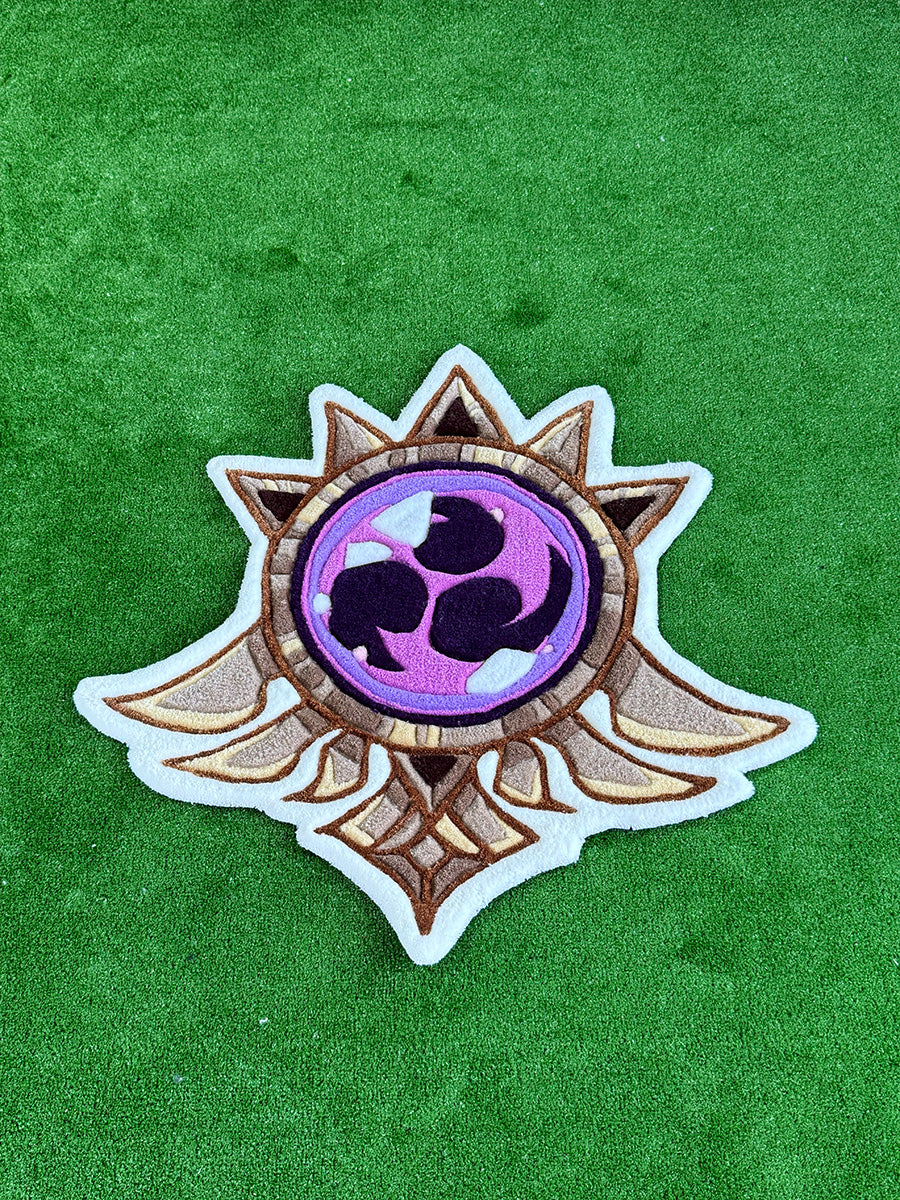 Design: Genshin Impact Electro Vision symbol; features a purple center, gold and brown decorative lines, and bold black contours.