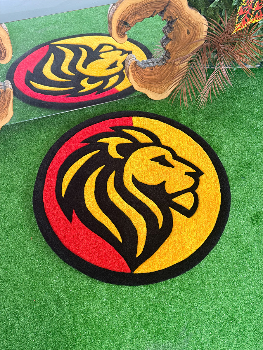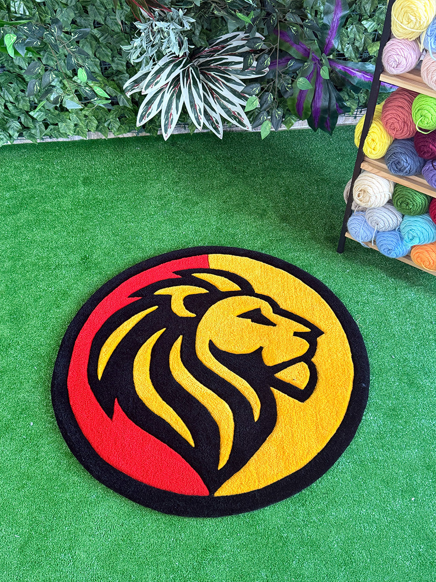 The GALEO Edition | Handmade Tufted Rug; brings team spirit into your space with its vibrant yellow-red color transition and powerful lion head silhouette. Whether you choose to display it on the floor or the wall, it performs perfectly. It features a non-slip backing to stay secure on the floor and comes with included mounting hardware for easy wall hanging right out of the box. Its round shape creates a striking focal point in entryways, living rooms, teen bedrooms, game rooms, or offices. The high-pile plush texture offers a soft feel underfoot, while the clean edge finish and dense tufting ensure lasting durability.