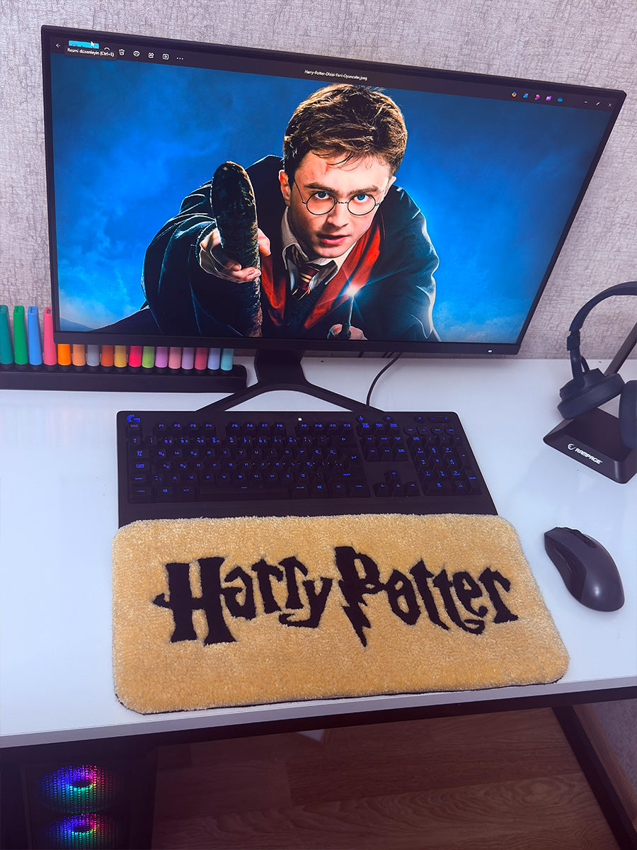 Harry Potter Edition 02 | Handmade Tufted Keyboard Pad; brings the legendary magic of Hogwarts right to your desk. Its ultra-soft plush texture turns into a magical support system, offering ergonomic comfort for your wrists during long work and gaming sessions. Designed specifically for Potterheads looking for both stylish decor and comfortable use, this unique piece will instantly transform the atmosphere of your workspace.