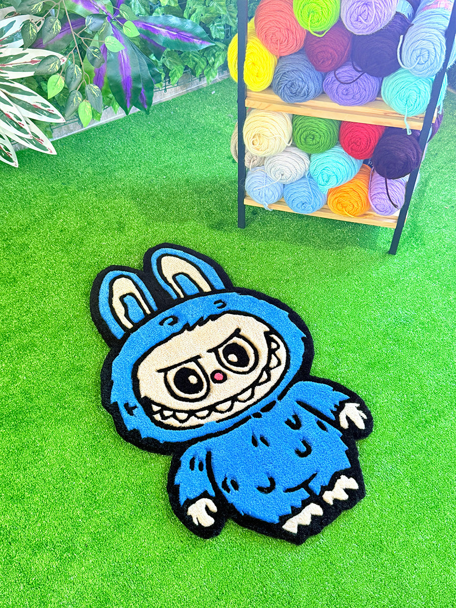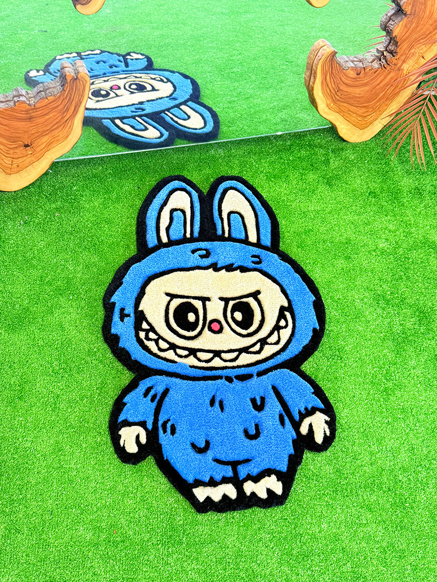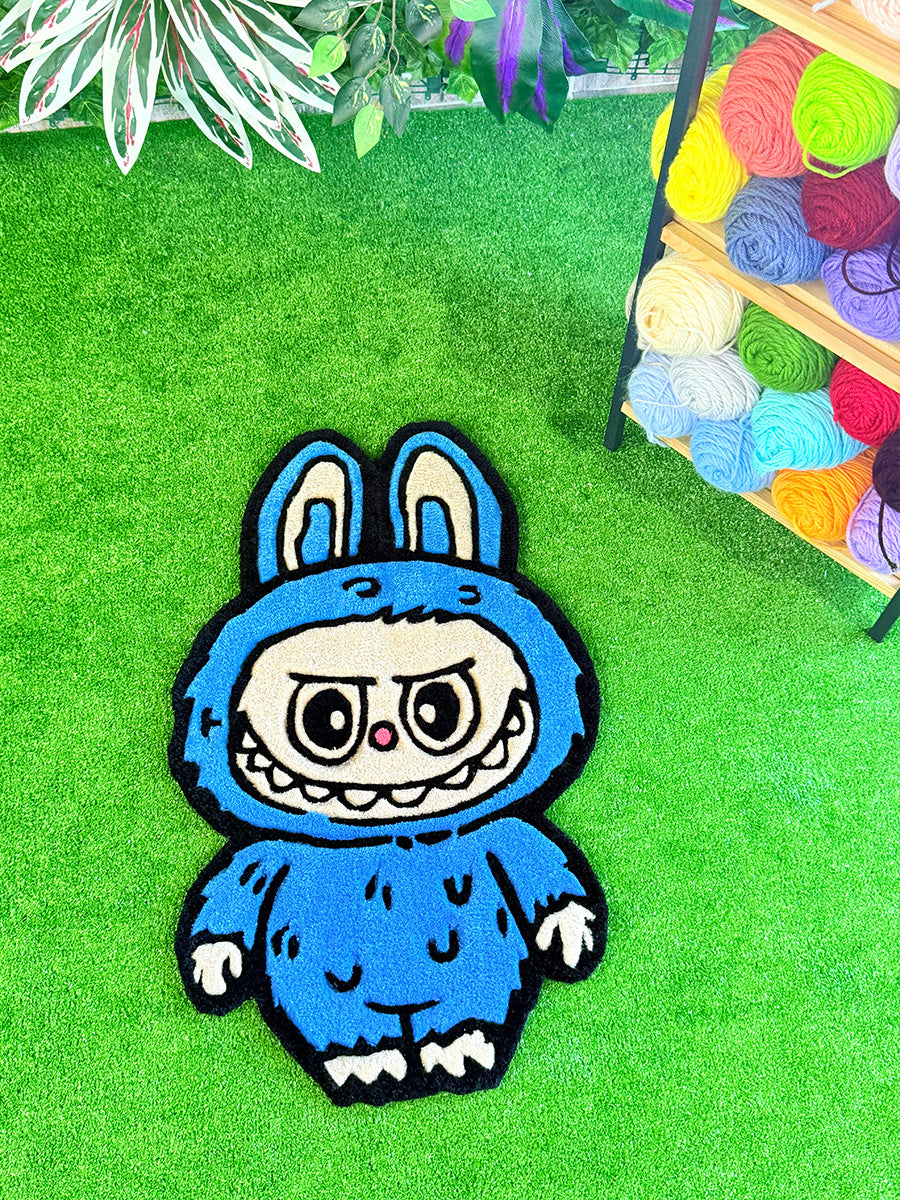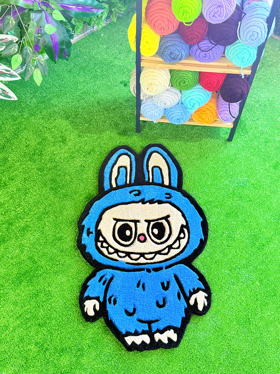 Labubu Blue Edition | Handmade Tufting Rug; Add a touch of joy to any space with this handmade rug featuring the iconic Blue Labubu figure. Its soft, fluffy texture offers maximum comfort, while the non-slip backing ensures safe use on any floor. Want to display it as art? It doubles as a wall hanging—hanging hardware is included in the box!