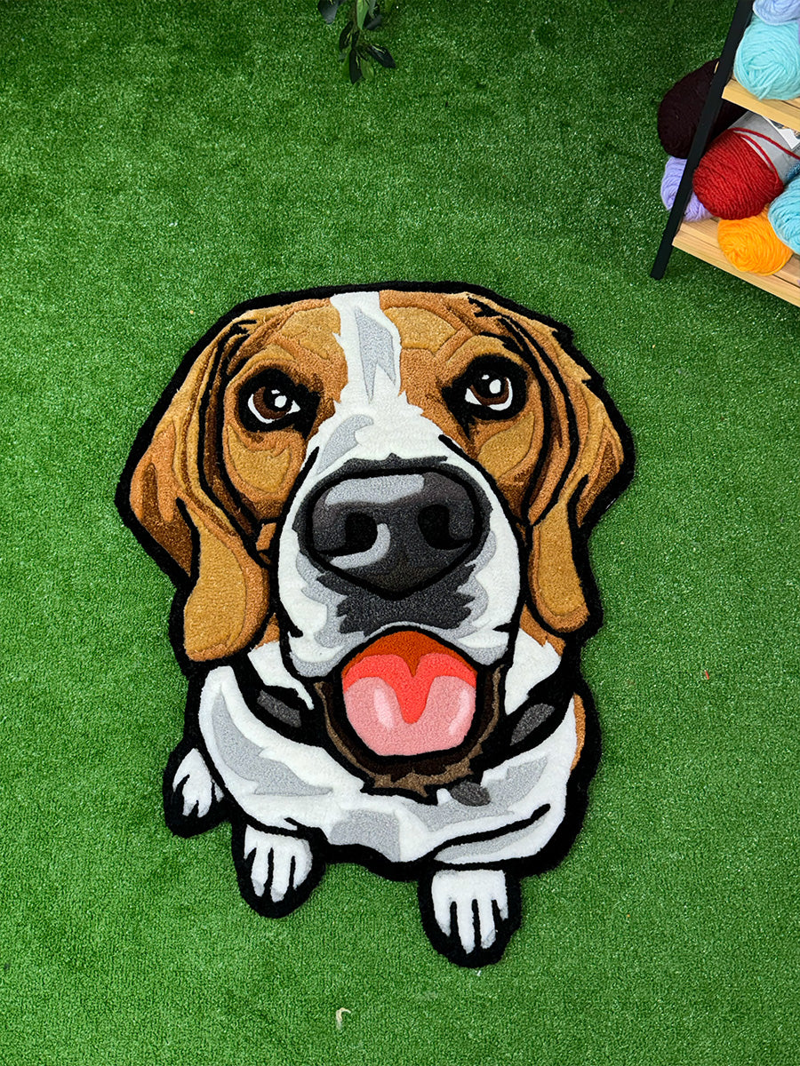 Design: The photo you send is first turned into an illustration. It is then submitted for your approval (you can request revisions until you are completely satisfied). Once approved, it is tufted into a rug with realistic details.