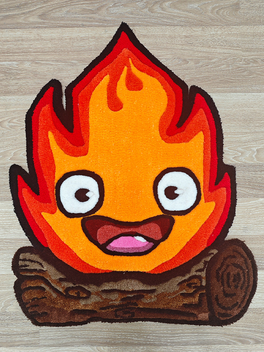 Studio Ghibli’nin sevilen karakteri Calcifer, bu eğlenceli ve sıcak tasarımla ev dekorasyonunuza hayat katıyor! Calcifer Halısı, canlı turuncu ve kırmızı tonlarıyla alev motifini sevimli bir yüz ifadesiyle birleştiriyor ve ortamınıza hem renk hem de karakter kazandırıyor. Tufting yöntemiyle özenle dokunan, detaylı işçiliği ve kaliteli %100 akrilik ipliklerle üretilmiş bu halı, hem yumuşak hem de dayanıklı bir kullanım sunar.