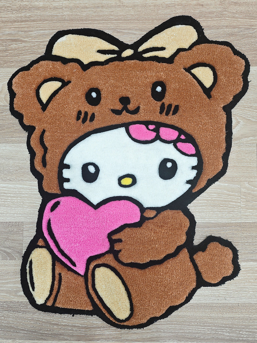 Sevilen karakter Hello Kitty, bu sevimli ayıcık kostümlü tasarımla çocuk odalarına sıcacık bir hava katıyor! Hello Kitty Ayıcıklı Halı, kahverengi ayıcık temasını, pembe kalpli detaylarla birleştirerek minikler için hem eğlenceli hem de şık bir dekoratif seçenek sunuyor. Tufting yöntemiyle özenle dokunan ve %100 akrilik ipliklerden üretilmiş olan bu halı, yumuşak dokusu ve dayanıklı yapısıyla uzun ömürlüdür.
