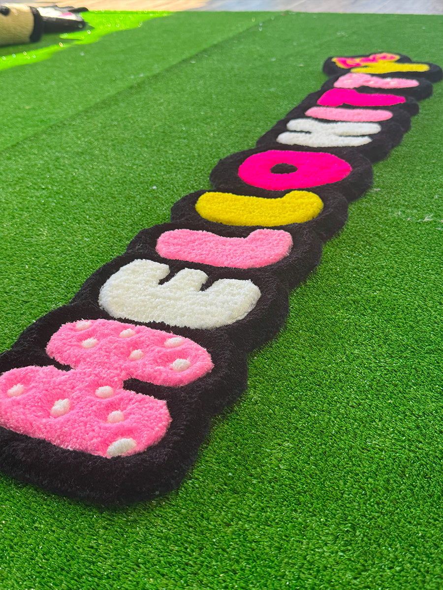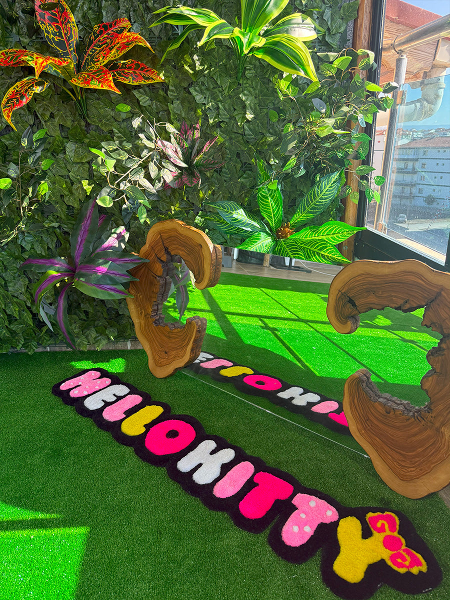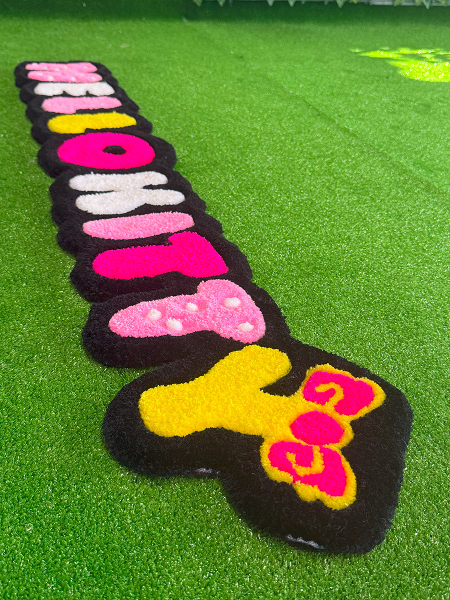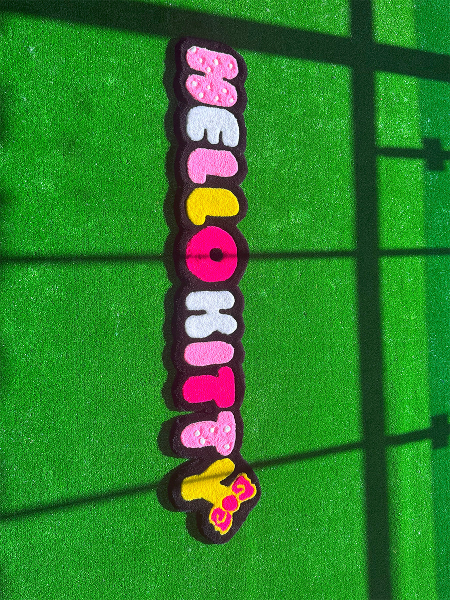 Hello kitty yazısı; rengarenk ve eğlenceli tasarımıyla çocuk odalarına neşe katacak bu özel tufting halı, Hello Kitty yazısının karakteristik ve ikonik çizgileriyle dikkat çekiyor. Her harf farklı bir renkte hazırlanmış olup, alt kısmında yer alan sarı fiyonk detayı tasarıma enerjik bir dokunuş katıyor. Hem duvara asılabilecek hem de yere serilebilecek şekilde kullanılabilir. Çocuk odalarında tematik dekorlar, fotoğraf köşeleri ya da doğum günü arka planlarında harika bir tamamlayıcı olarak tercih edilebilir.
