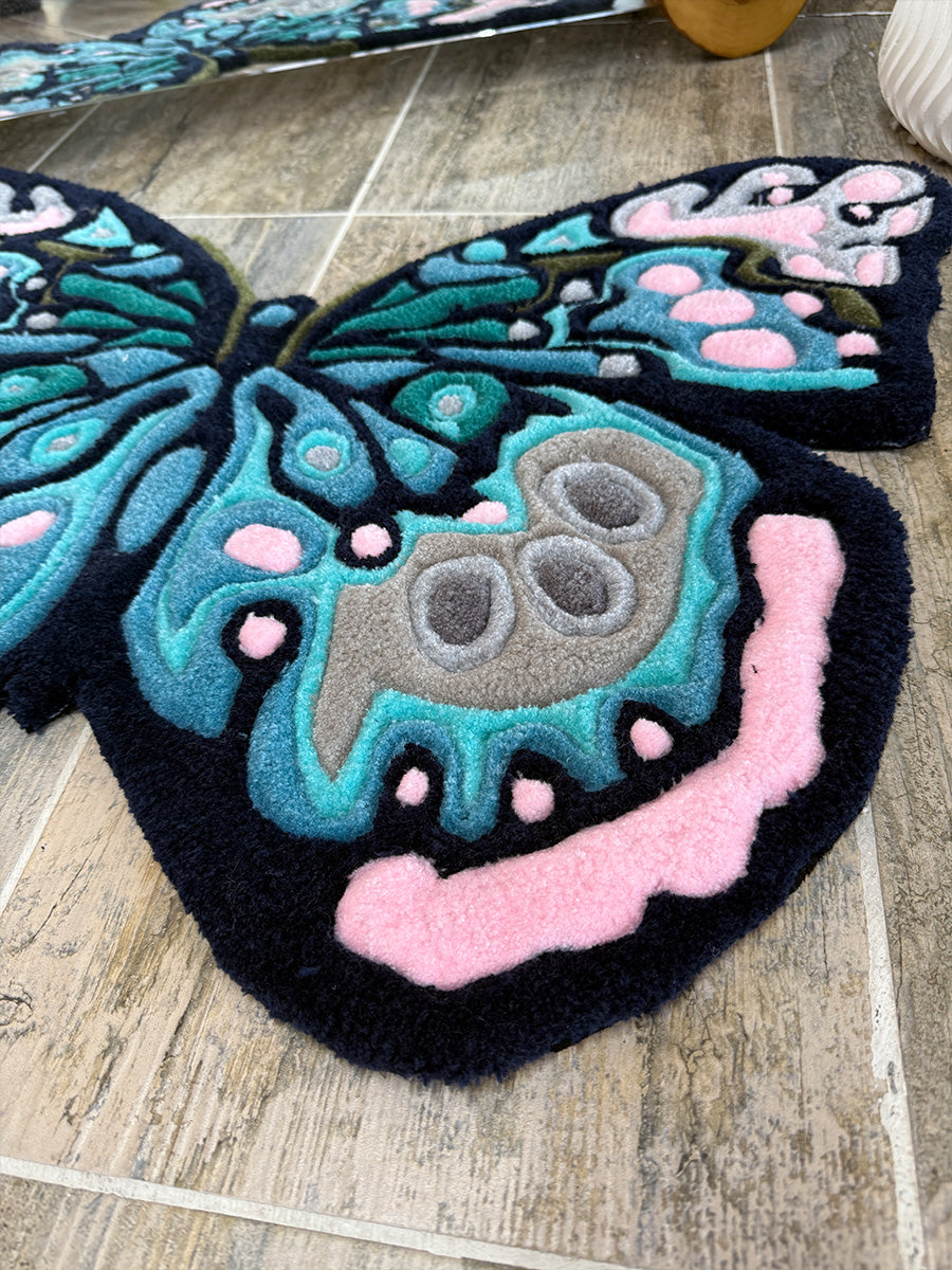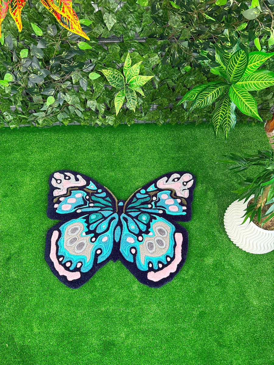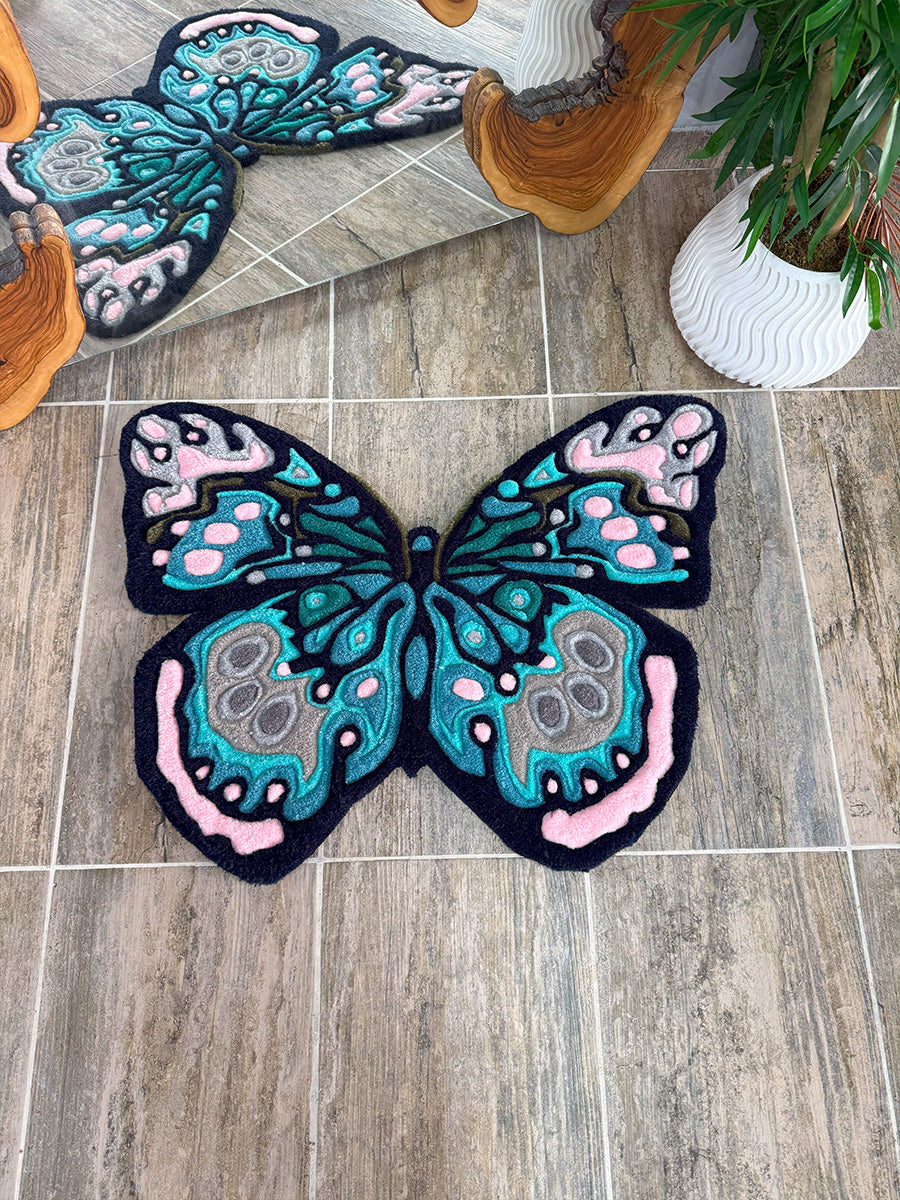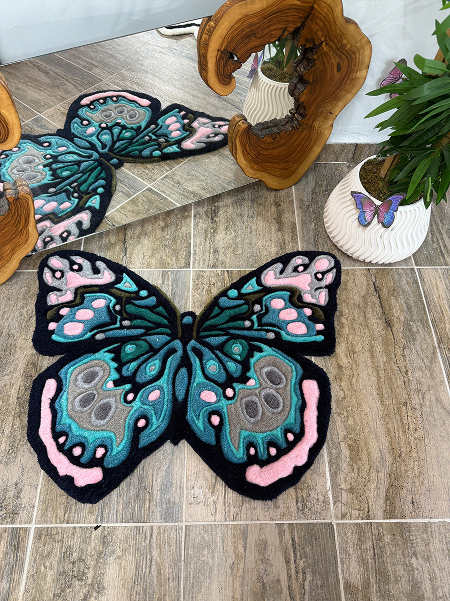 Kelebek Halı; Doğanın zarifliğini yansıtan bu kelebek halı, göz alıcı renk geçişleri ve detaylı işçiliğiyle öne çıkıyor. Pastel pembe, turkuaz ve antrasit tonlarının bir araya geldiği bu tasarım, mekanlarınıza canlı ve yaratıcı bir dokunuş kazandırıyor. Tufting tekniğiyle üretilen özel formu sayesinde, yalnızca bir halı değil, aynı zamanda dekoratif bir sanat parçası işlevi görüyor. Özellikle doğadan ilham alan temalara sahip alanlar için kusursuz bir seçimdir.