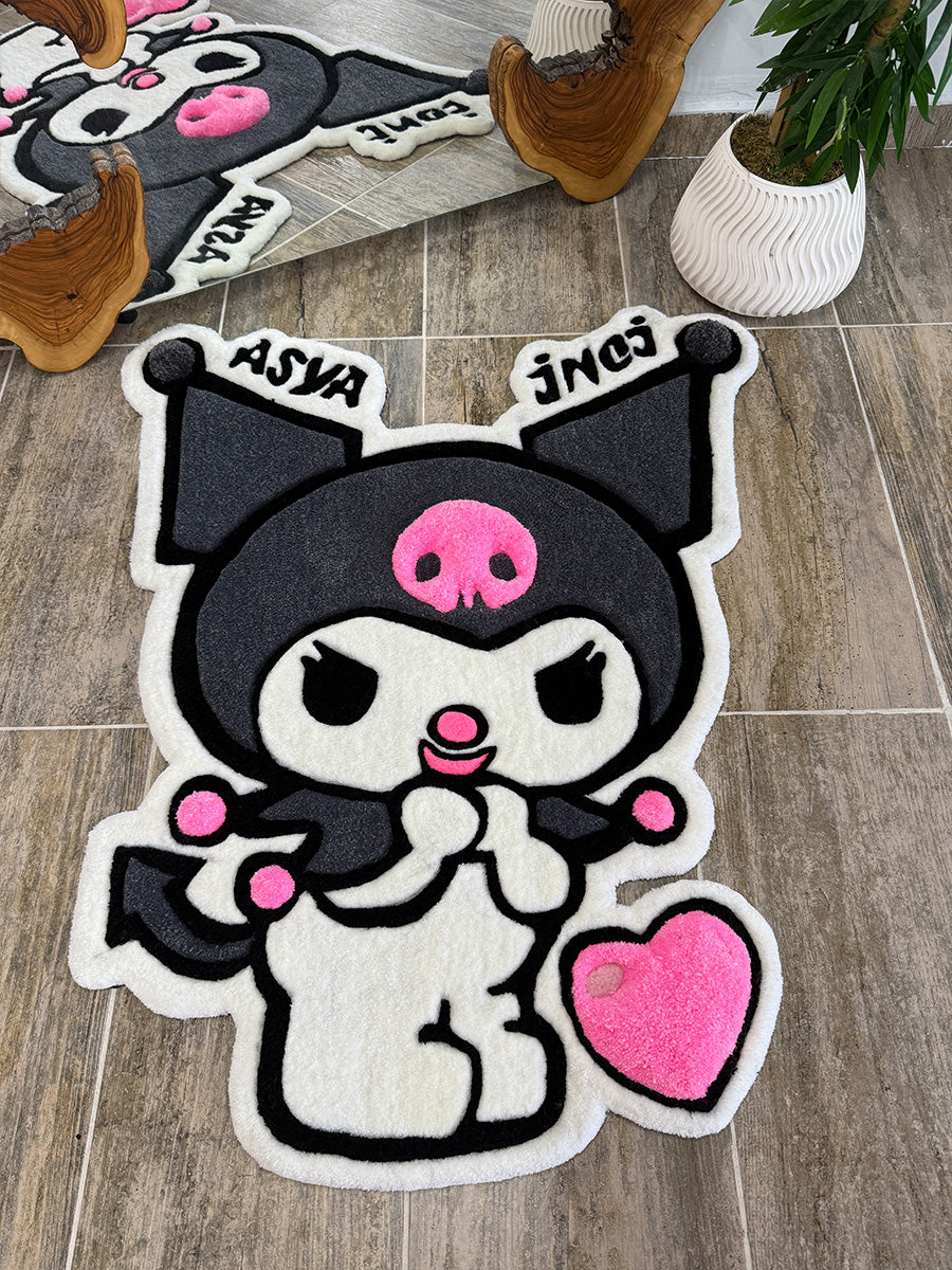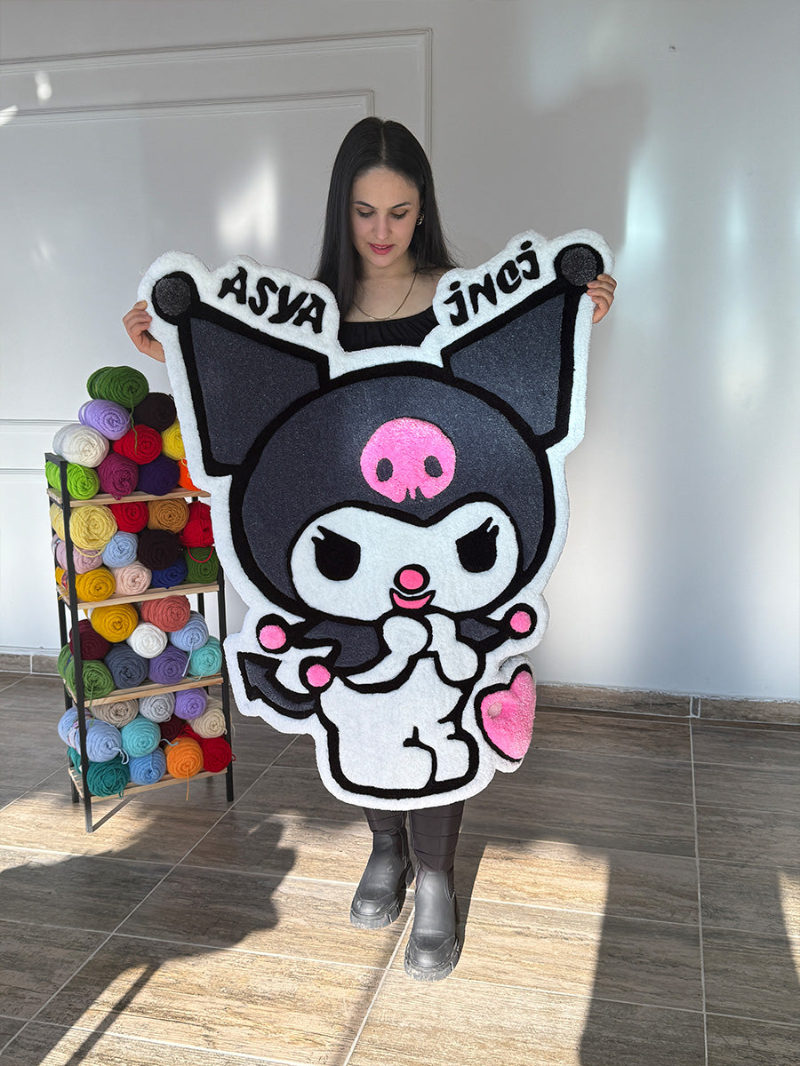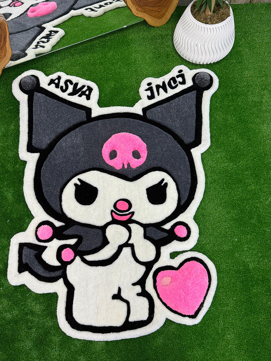 Kuromi halısı; Kuromi karakterinin enerjik ruhunu yansıtan bu özel halı, çocuk odalarına eğlenceli ve özgün bir hava katıyor. Sevimli görünümü ve ikonik detaylarıyla Kuromi severler için harika bir tercih olan bu tufting halı, kişiselleştirilebilir yapısıyla da öne çıkıyor. Halının üst kısmına iki adet isim veya isim-soyisim eklenebilmektedir. Böylece çocuğunuza özel hale gelir ve unutulmaz bir hediye seçeneğine dönüşür.