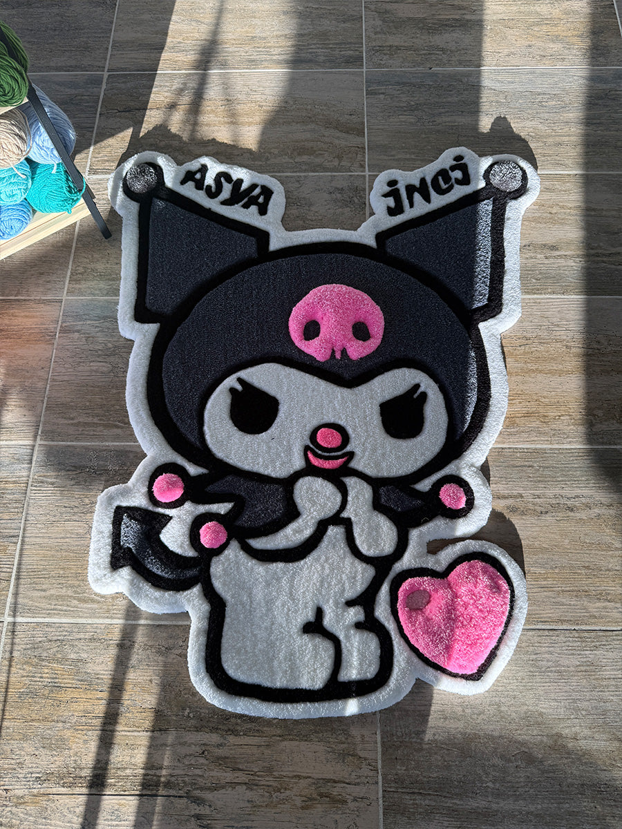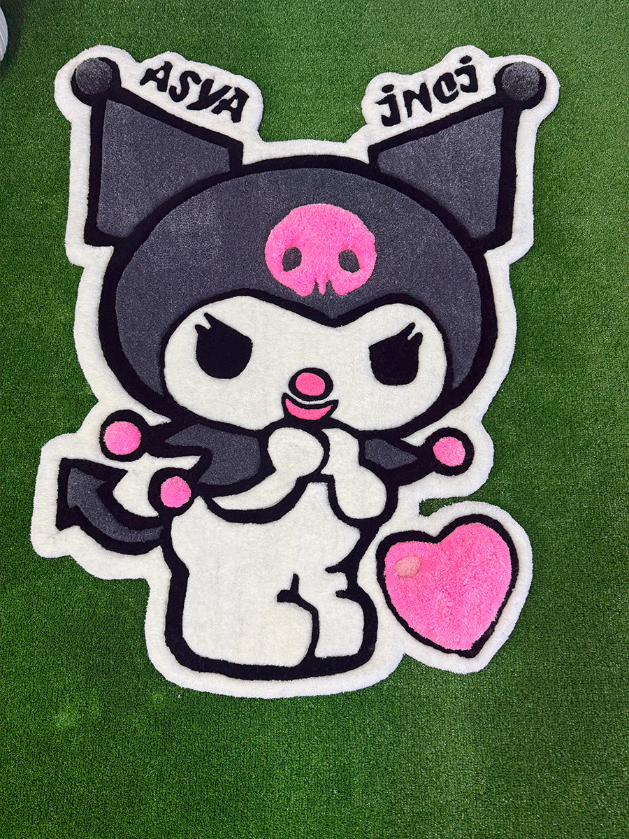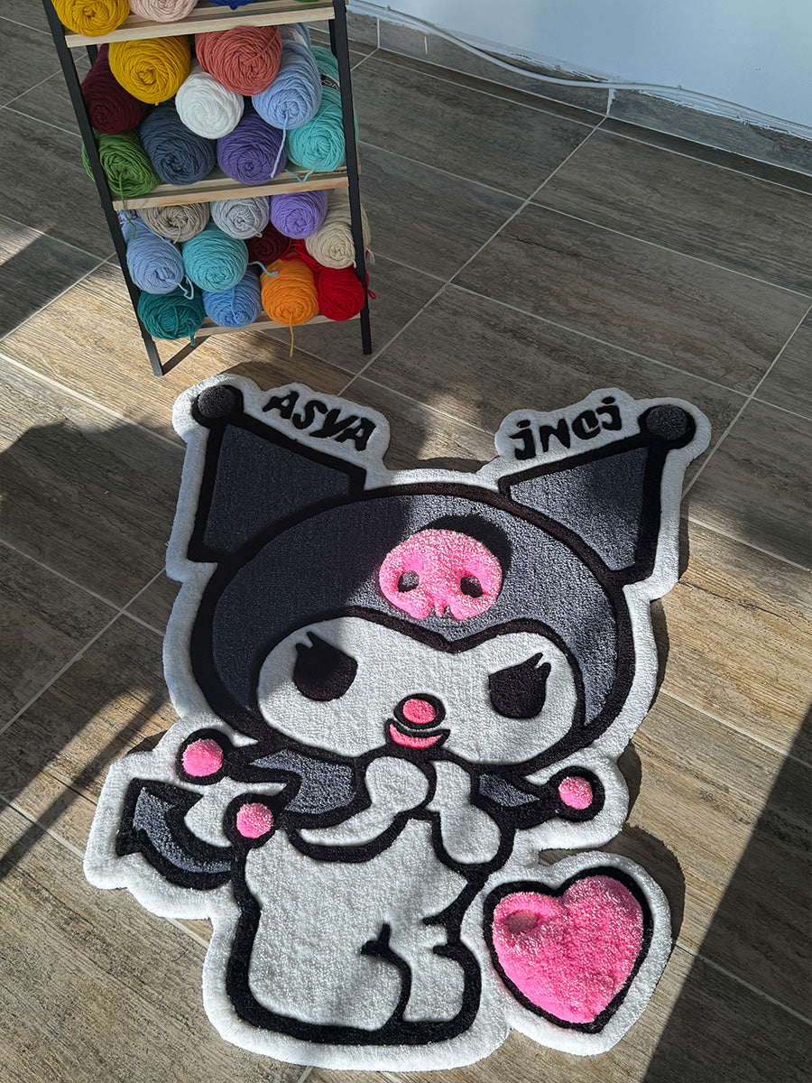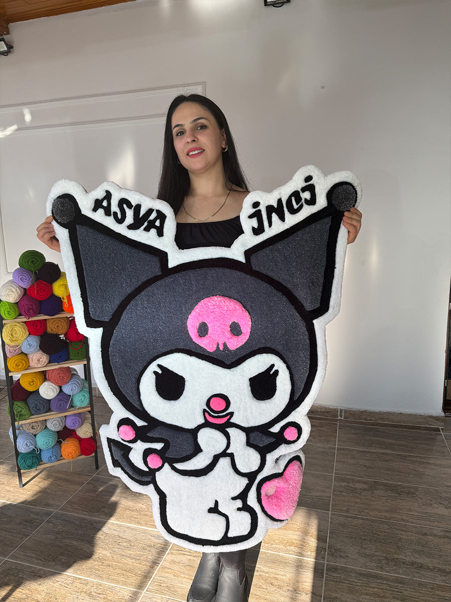 Kuromi halısı; Kuromi karakterinin enerjik ruhunu yansıtan bu özel halı, çocuk odalarına eğlenceli ve özgün bir hava katıyor. Sevimli görünümü ve ikonik detaylarıyla Kuromi severler için harika bir tercih olan bu tufting halı, kişiselleştirilebilir yapısıyla da öne çıkıyor. Halının üst kısmına iki adet isim veya isim-soyisim eklenebilmektedir. Böylece çocuğunuza özel hale gelir ve unutulmaz bir hediye seçeneğine dönüşür.
