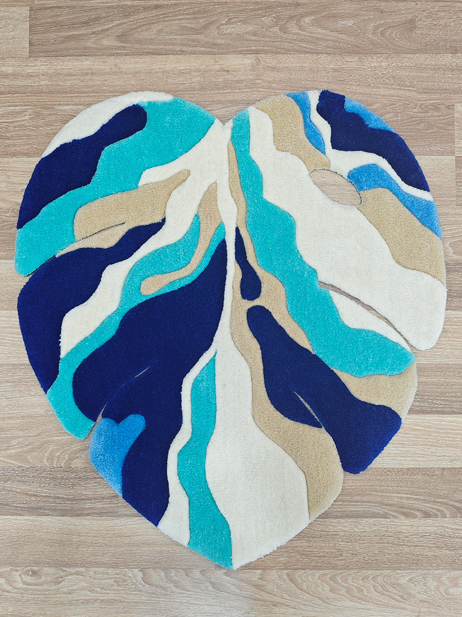 Monstera Yaprak Halı Yaprak Tufting Halısı Mavi (90x80 cm) Outlet Fırsatı