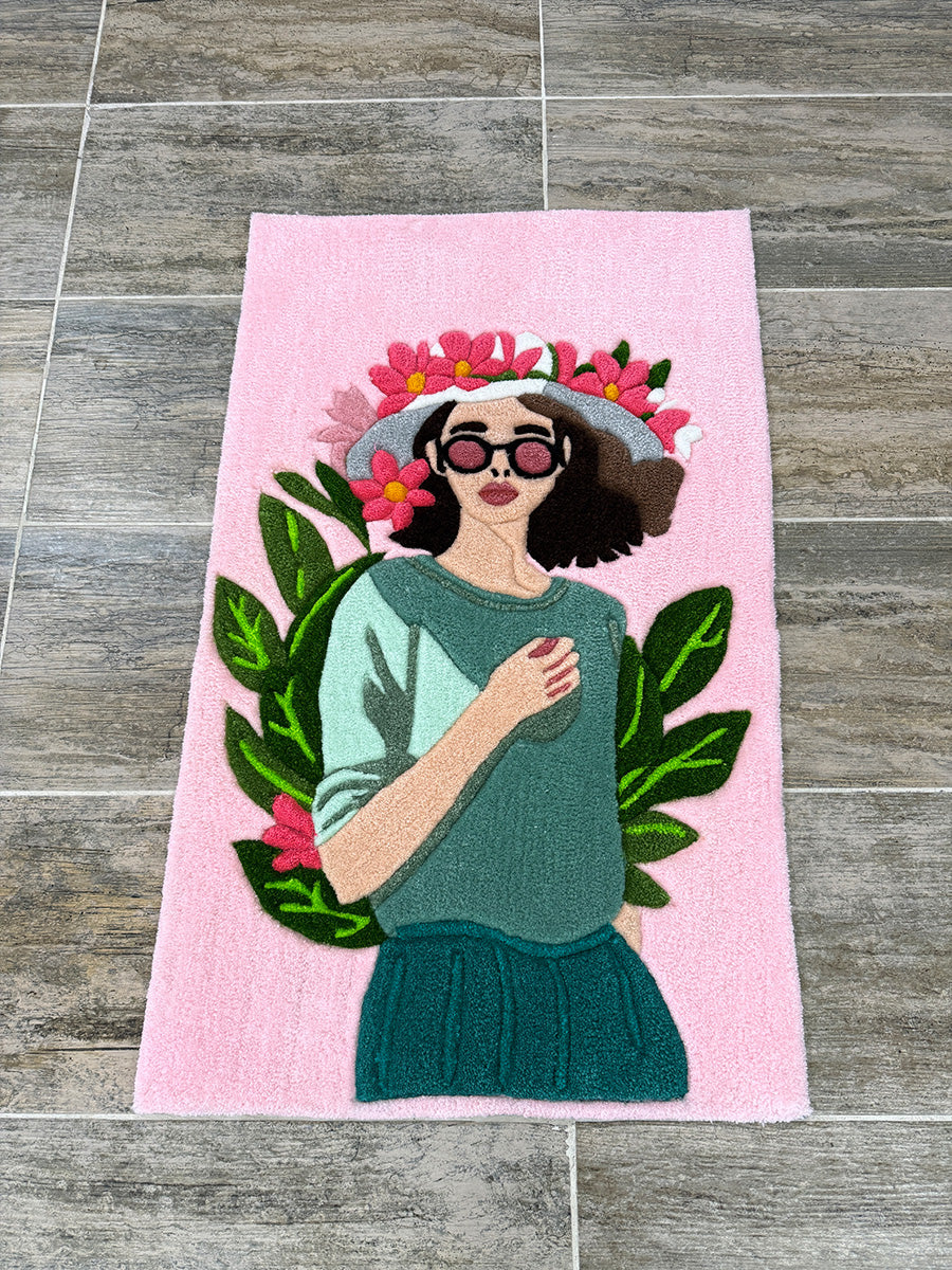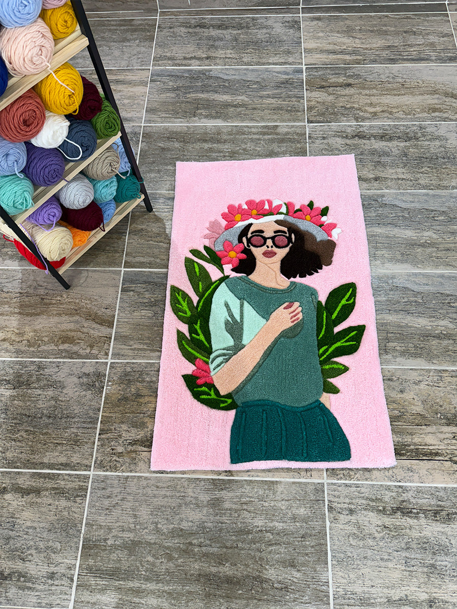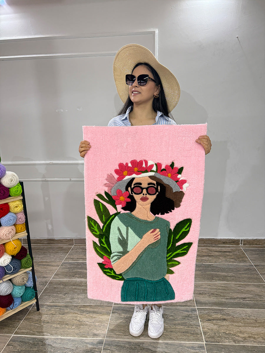 Portre Halı Sanatsal Çiçekli Kadın Tufting Halısı