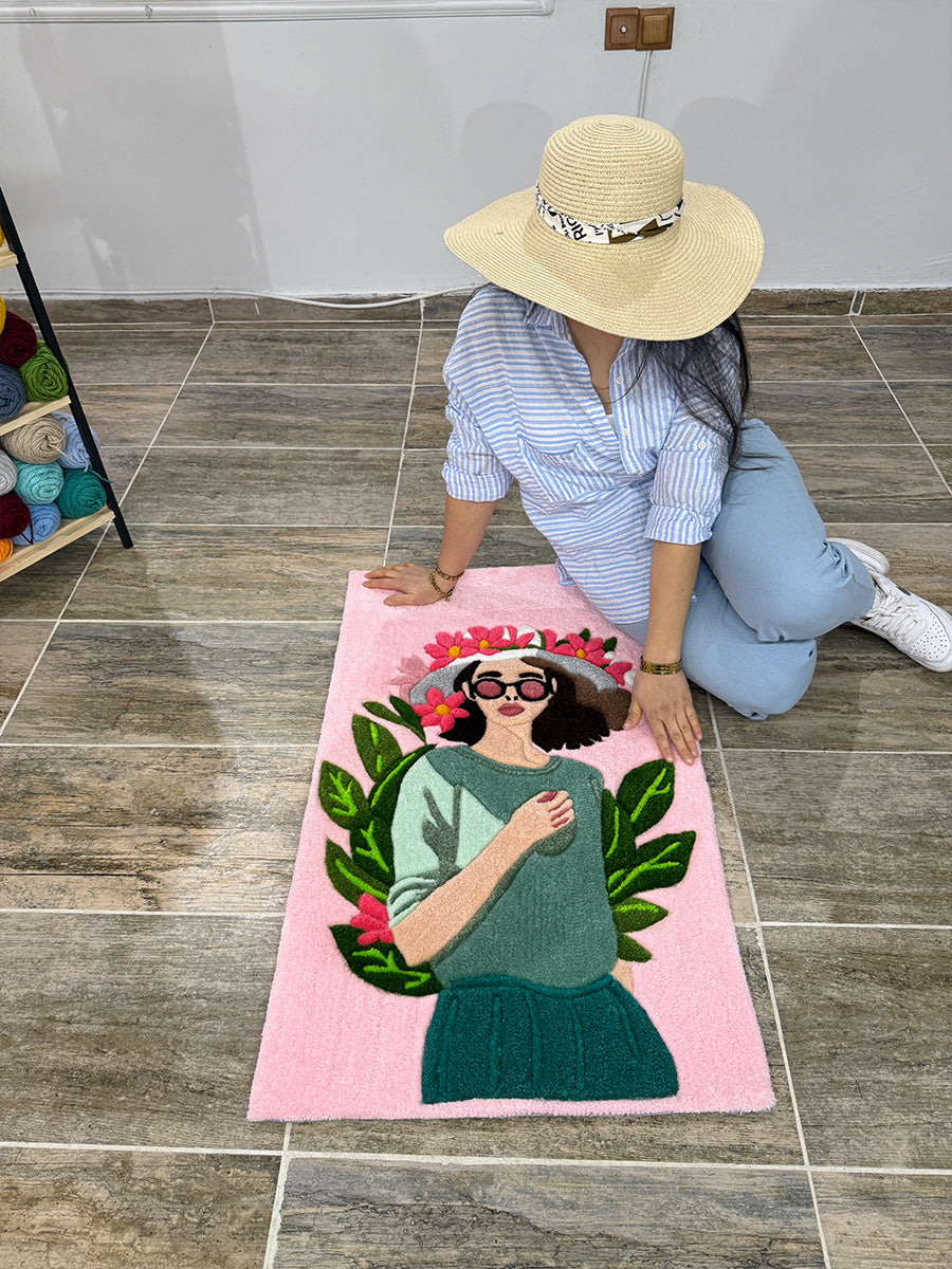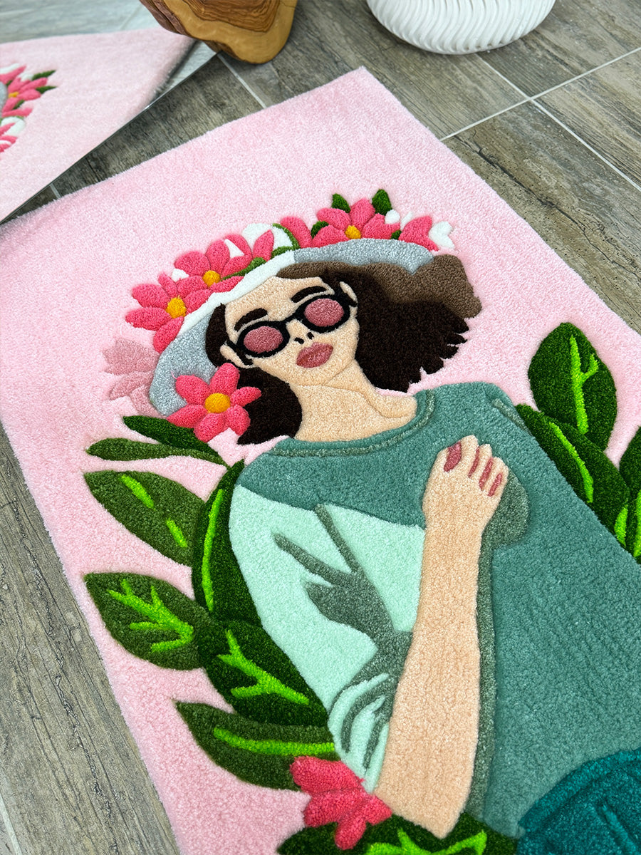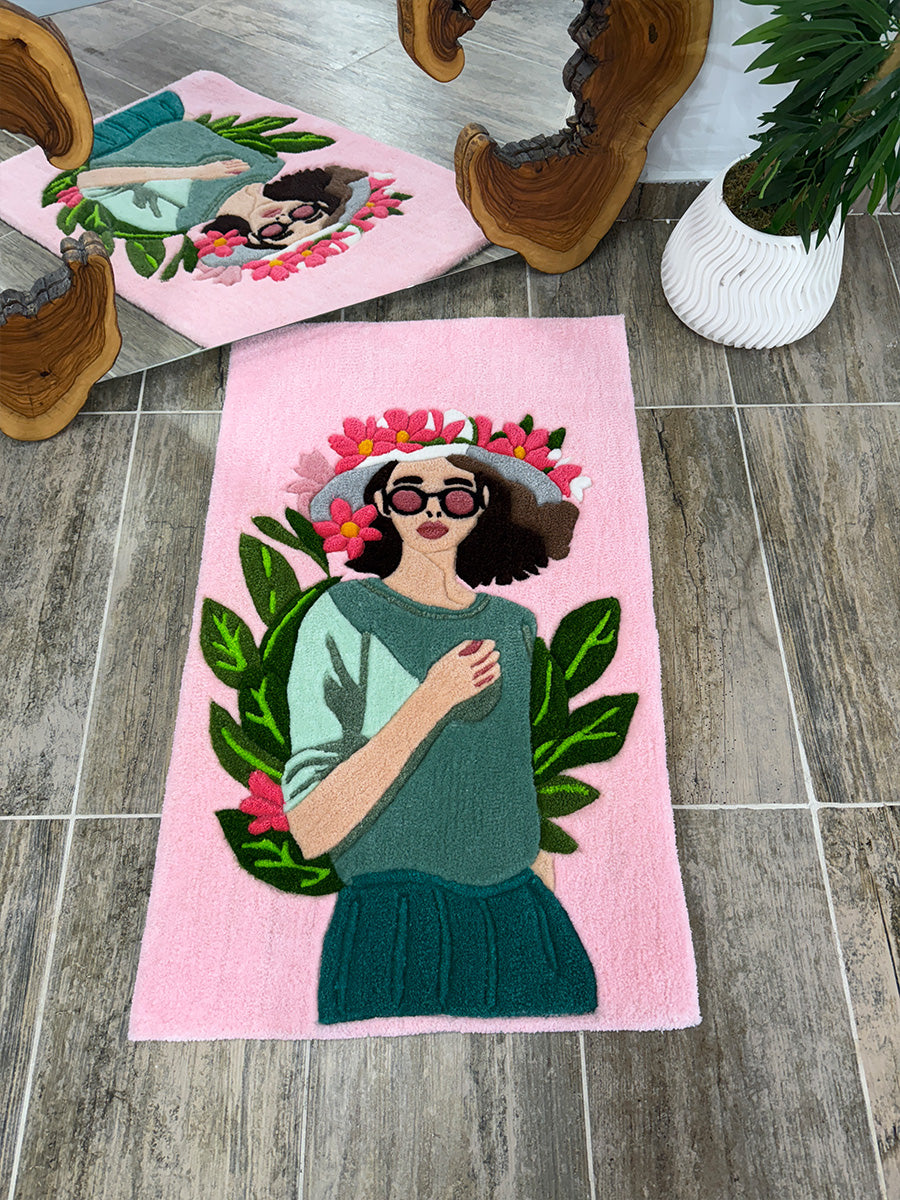 Portre Halı Sanatsal Çiçekli Kadın Tufting Halısı